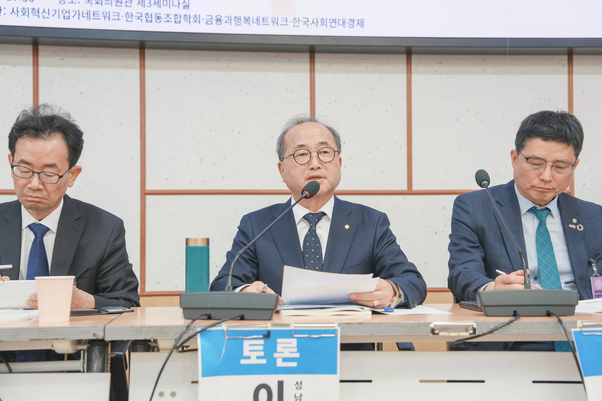 환영사: 고영철 신협중앙회 회장, 남궁정 사회혁신기업가네트워크 이사장, 장종익 한국협동조합학회 회장, 정운영 금융과행복네트워크 이사장, 김경민 한국사회연대경제 상임대표